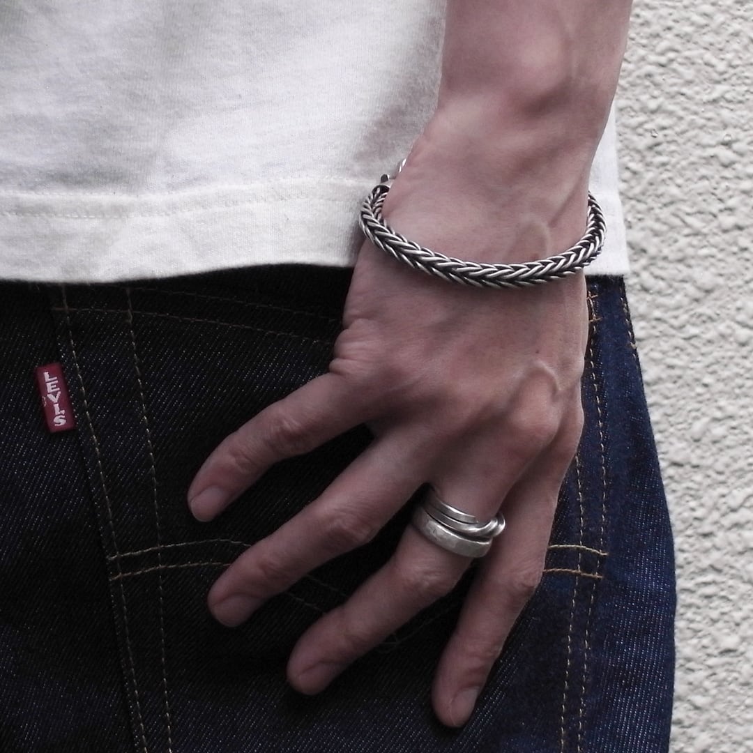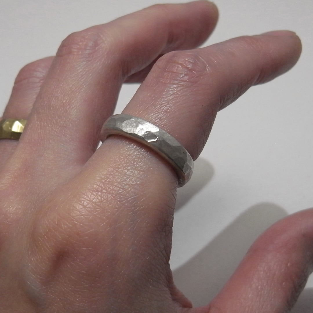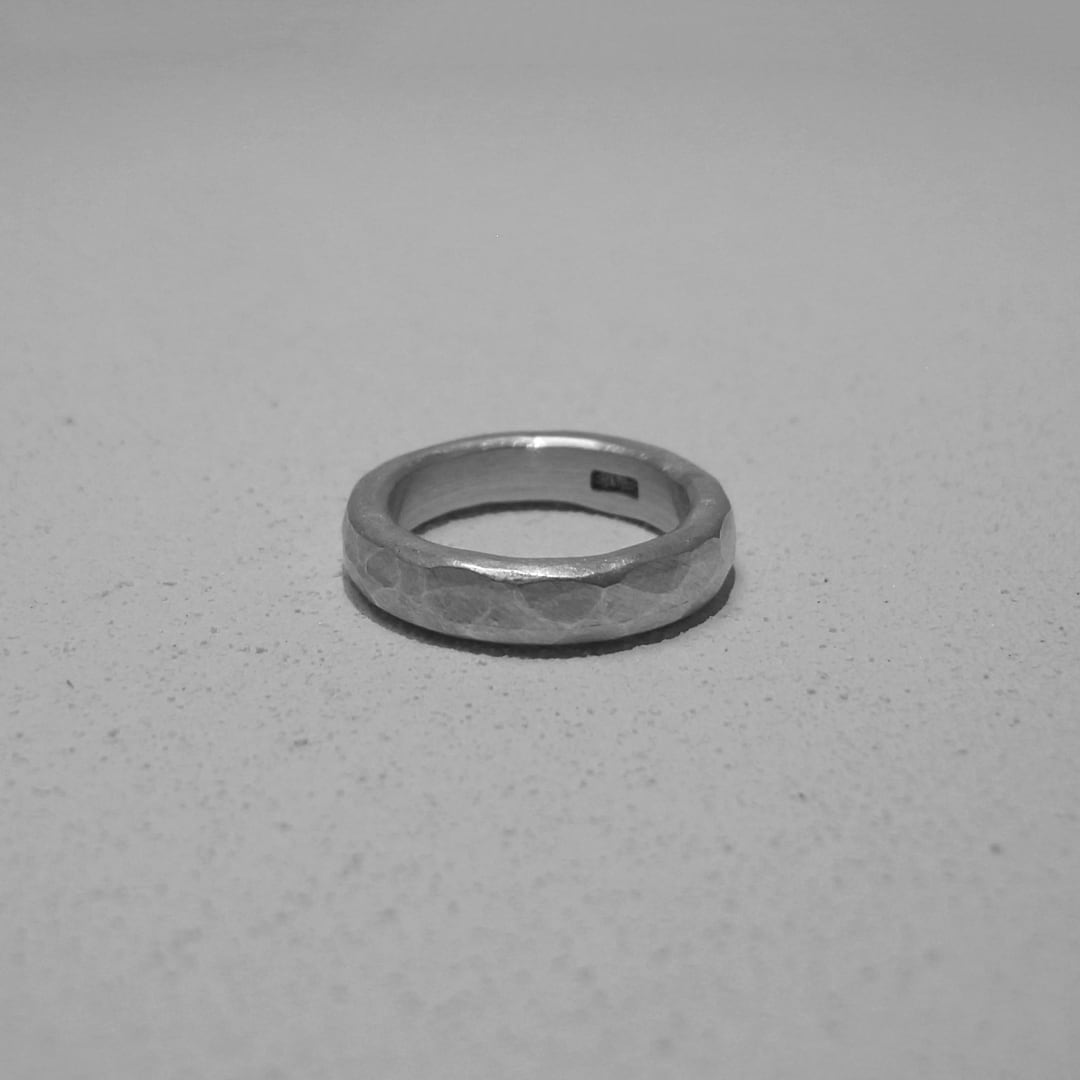 ハンマリングによるテクスチャーを施した甲丸リング。