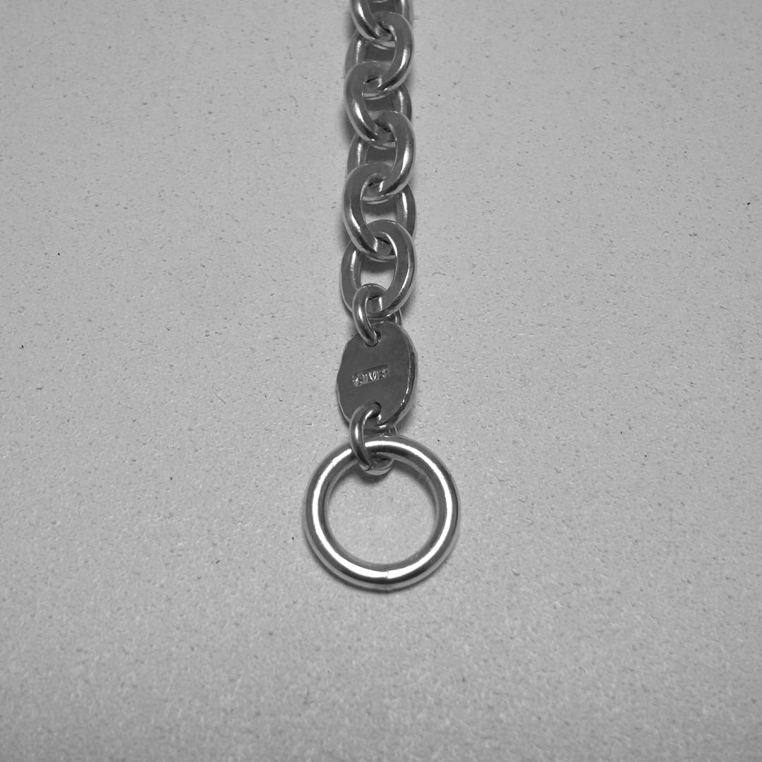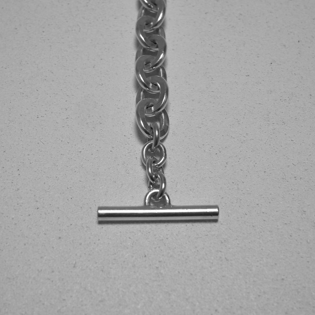 ひとこまずつにハンマリングによるテクスチャーを施し、抜け感と趣のある表情が魅力のチェーンブレスレット。