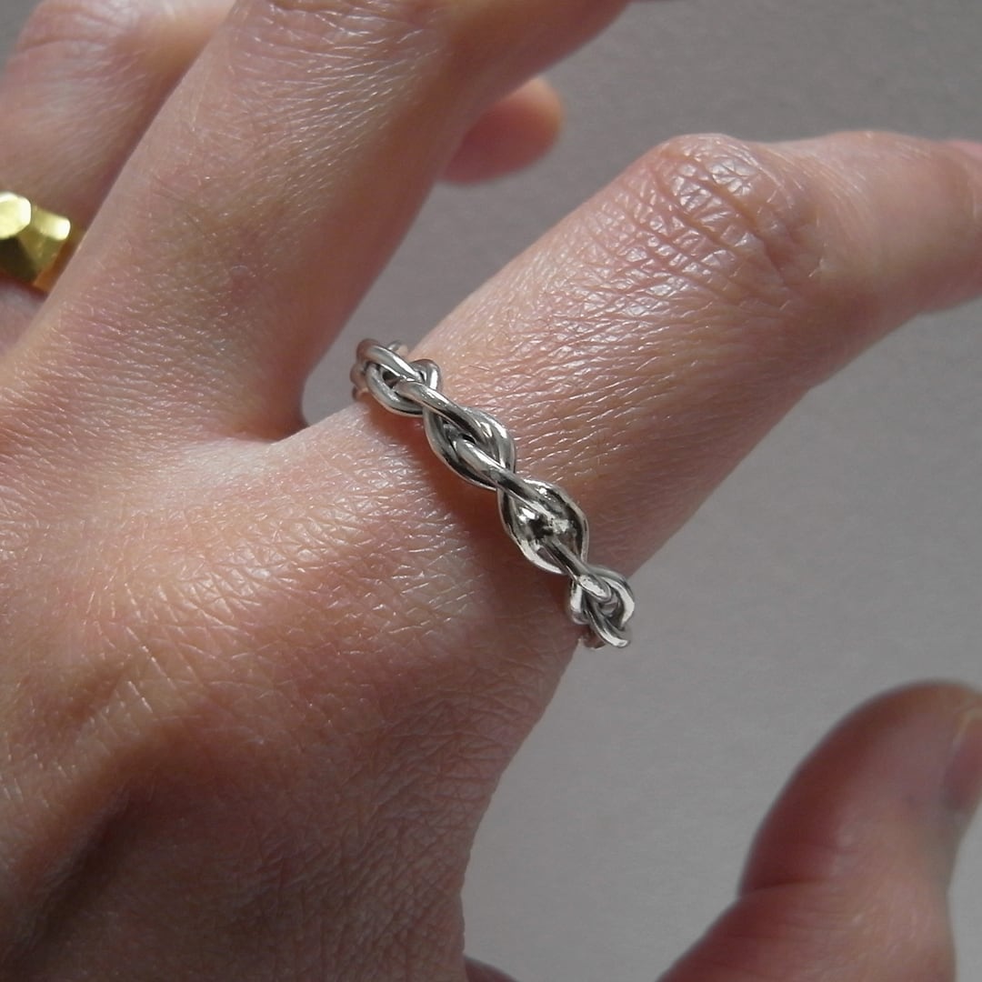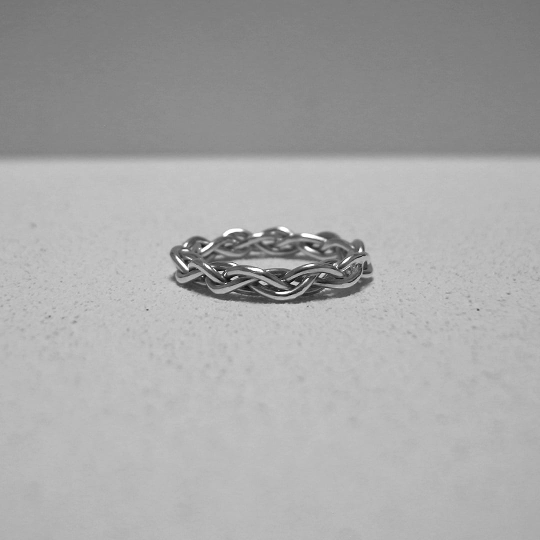 細い丸線を編み込んだリング。