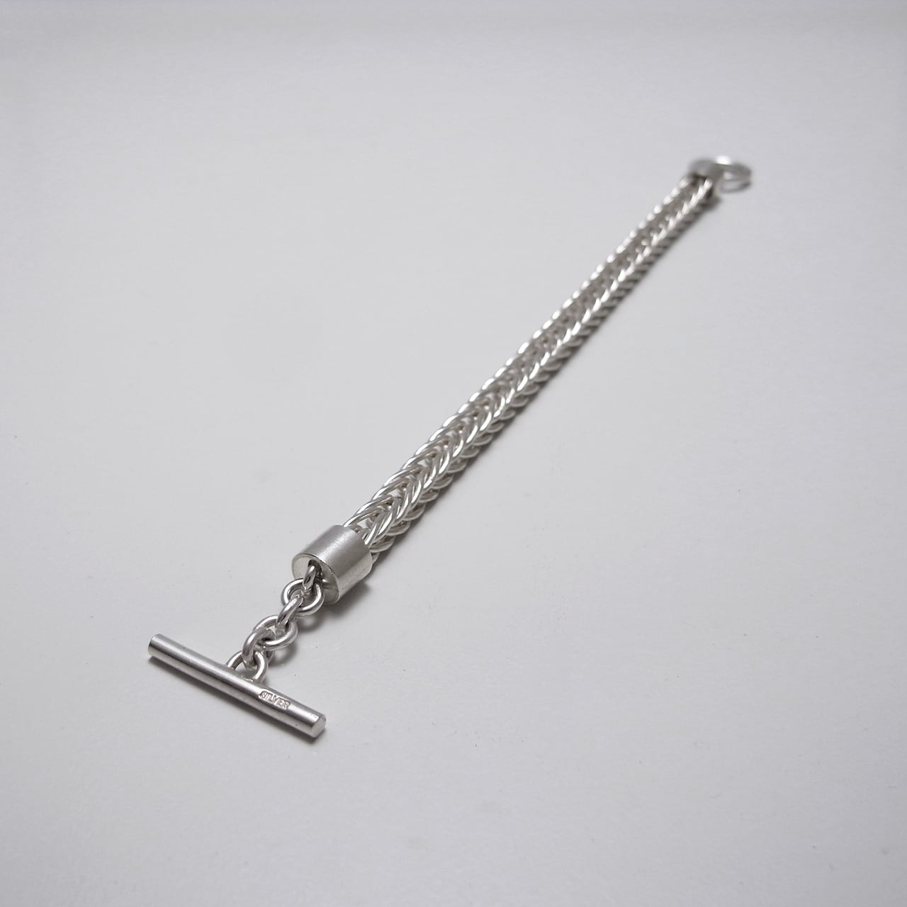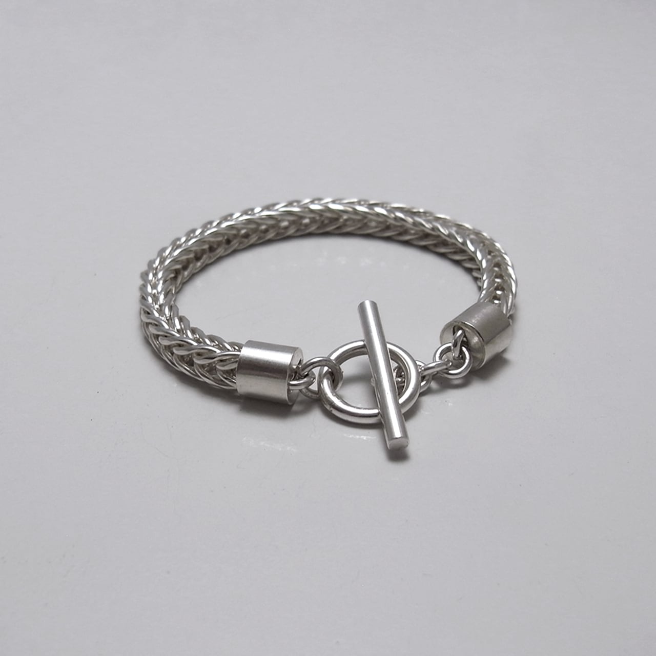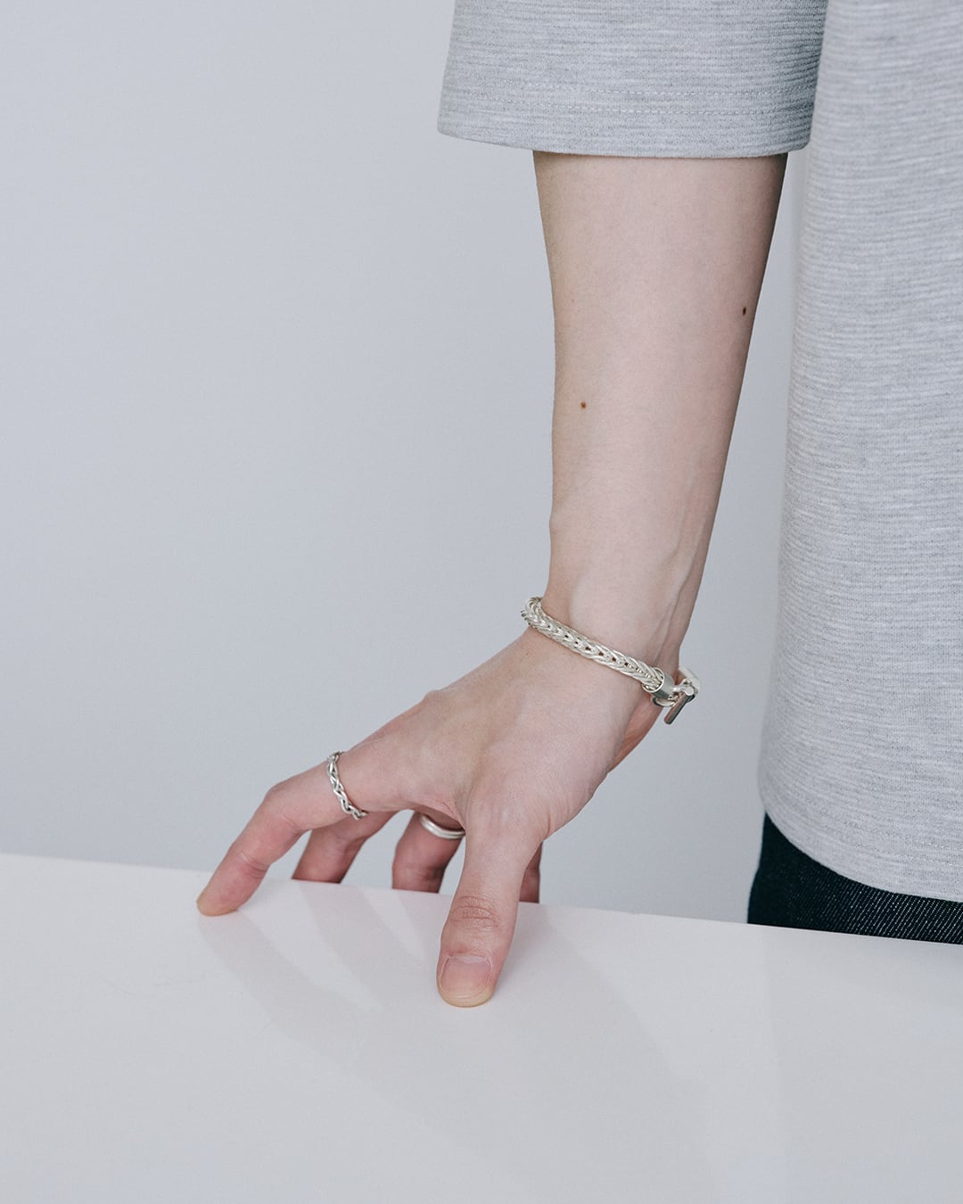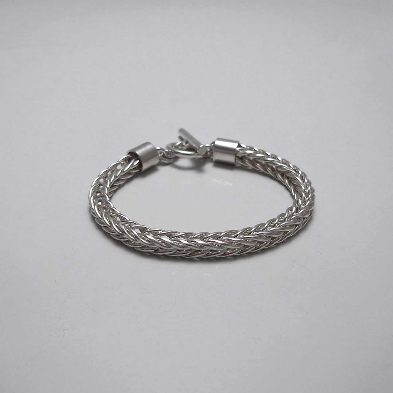 手首の一番細い部分(骨のふくらみの下辺り)の腕回りを測って頂き、その数値に3.5〜4cm程を足した長さがこちらのブレスレットの適切サイズです。