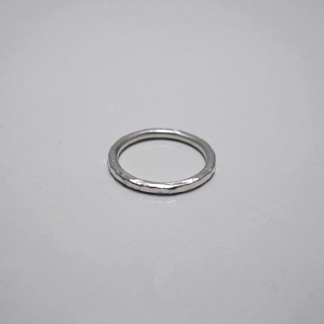 2mm×2mmの丸線にハンマリングによるテクスチャーを施した細身のリング。
