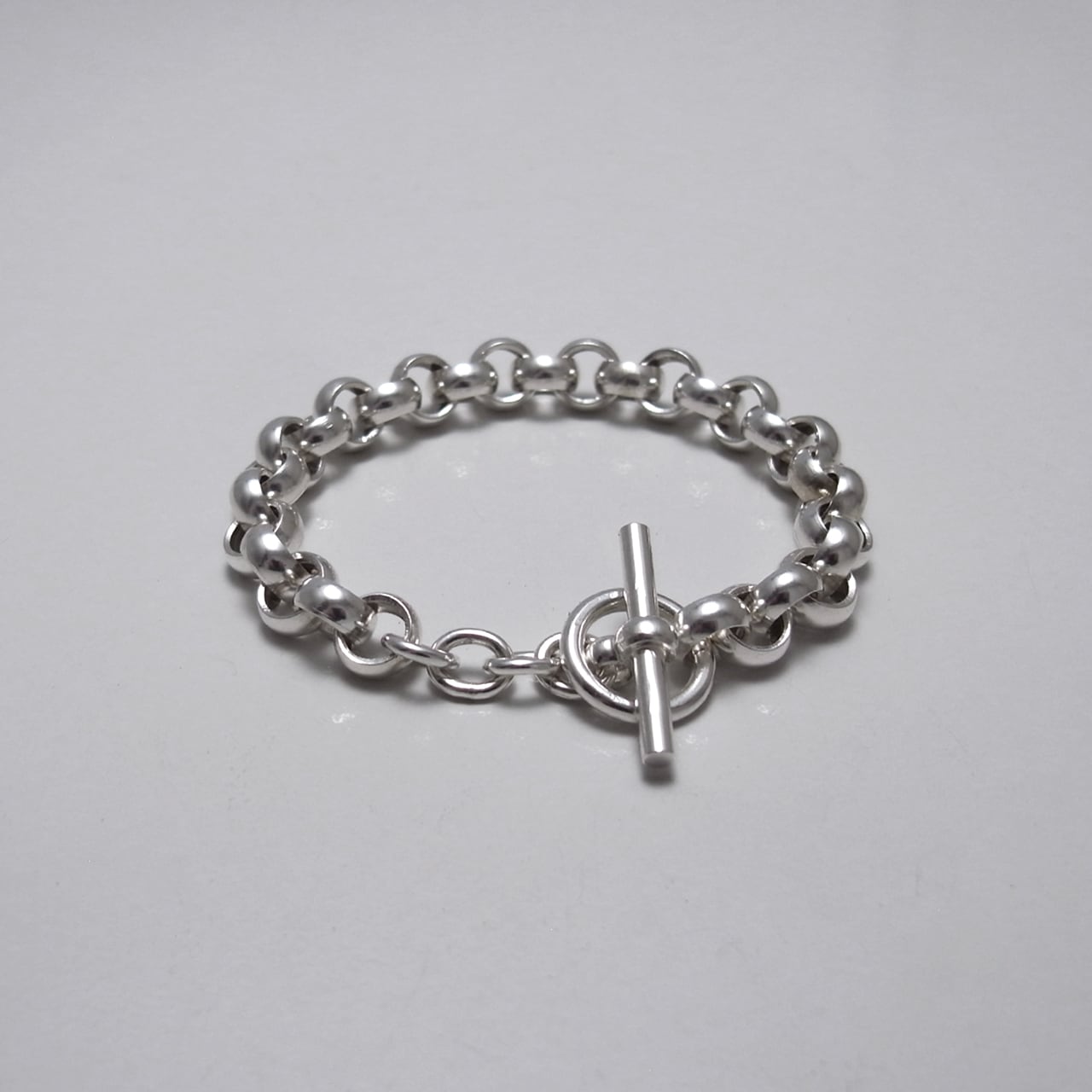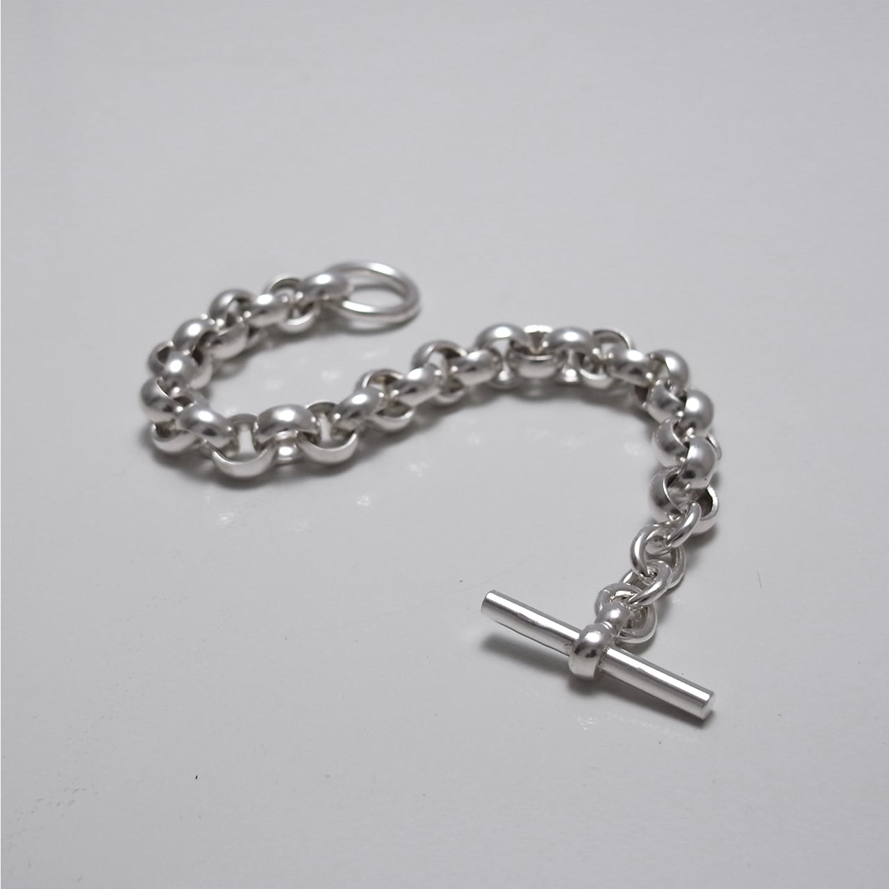 手首の一番細い部分(骨のふくらみの下辺り)の腕回りを測って頂き、その数値に3.5〜4cm程を足した長さがこちらのブレスレットの適切サイズです。
